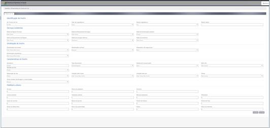 Essa funcionalidade permite o cadastro de informações de logradouro, associação com o trecho de via e caracterização da infraestrutura existente no trecho associado, bem como ao redor do mesmo. Após a escolha, o primeiro passo é cadastrar o logradouro com opção de escolher tipo de logradouro, nome, Lei de Criação e Código do logradouro (Figura 8).