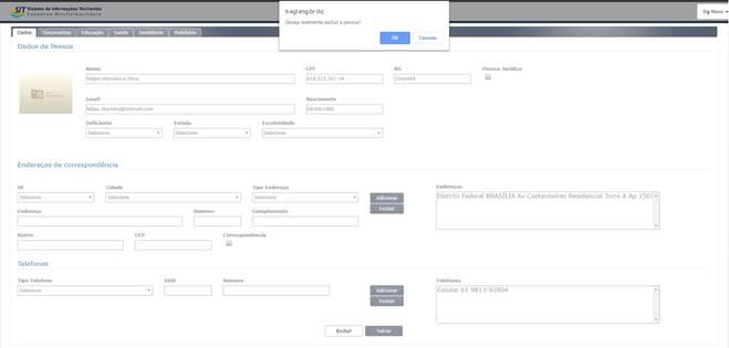 A mesma situação ocorre para exclusão de todo o cadastro da pessoa (Figura 12).