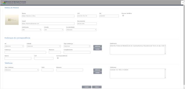 Podem ser inseridos para uma mesma pessoa um ou mais endereços, sendo que obrigatoriamente um deles deve ser compreendido como endereço de correspondência. Para telefones a regra se aplica da mesma maneira (Figura 10).