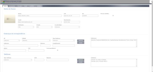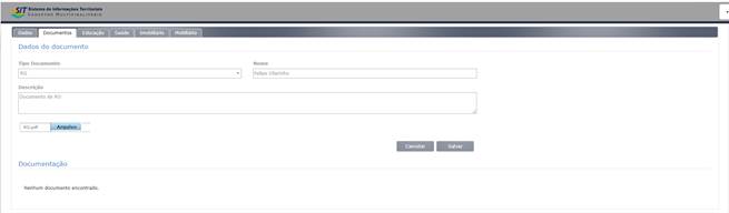 Essa funcionalidade permite o cadastro de Dados (Figura 8) e Documentos (Figura 9) da pessoa.