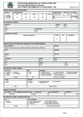 A terceira opção viabiliza a visualização do Boletim de Inscrição Cadastral (BIC) da respectiva inscrição imobiliária (Figura 6). Esse documento traz todas informações da inscrição imobiliária no que se refere à sua natureza fiscal.
