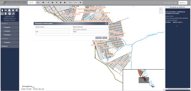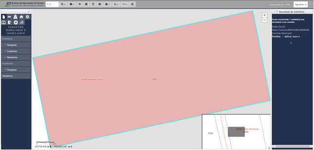 Com base na consulta específica o resultado se apresenta no visualizador dos serviços de mapa, bem como no lado direito do SIT (Figura 75).